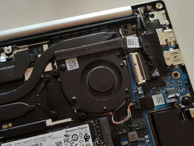 拆開看內(nèi)部,榮耀MagicBook Pro內(nèi)部空間非常大,可以看到大電池,雙風(fēng)扇,硬盤等布局都非常緊湊。