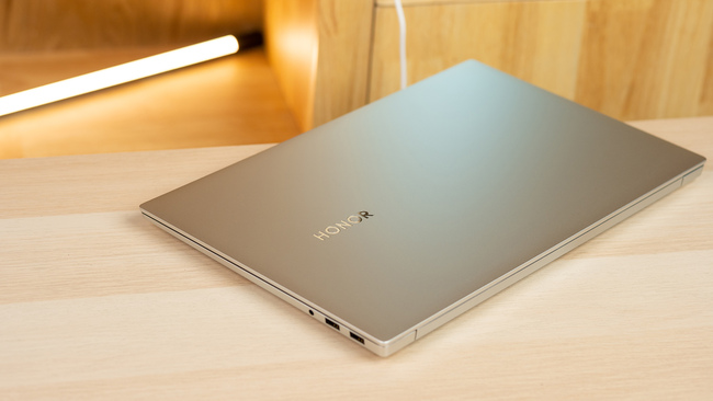 外觀方面,榮耀MagicBook Pro延續(xù)了一貫的家族設(shè)計語言,A面非常簡潔,僅有一個榮耀的“HONOR”logo。整體的外殼采用陽極氧化工藝打造的鋁合金機身,觸感細膩。logo部分采用了亮面的設(shè)計,堪稱點睛之筆。