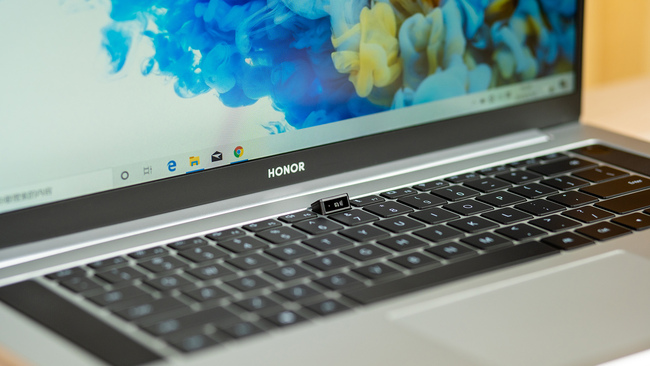 C面采用了輕薄的鍵盤,鍵程短,觸感清脆。同時采用了指紋式電源按鍵,指紋解鎖和開機一鍵完成。并且榮耀MagicBook Pro采用了更大的觸摸板,提升了操作面積,沒有鼠標的時候也能操作靈敏。值得注意的是,榮耀MagicBook Pro將攝像頭放在了鍵盤上,一按升起,從而極大限度上能夠保護個人隱私安全。