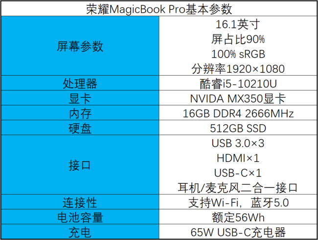 首先我們來看一看全新榮耀MagicBook Pro的基本參數(shù)。
