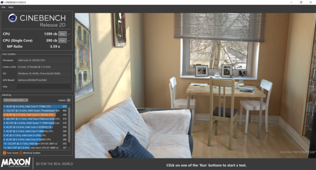 在最新版本的CineBench R20中,多線程成績達到了1399cb,單線程也達到了390cb,處理器性能非常出色。