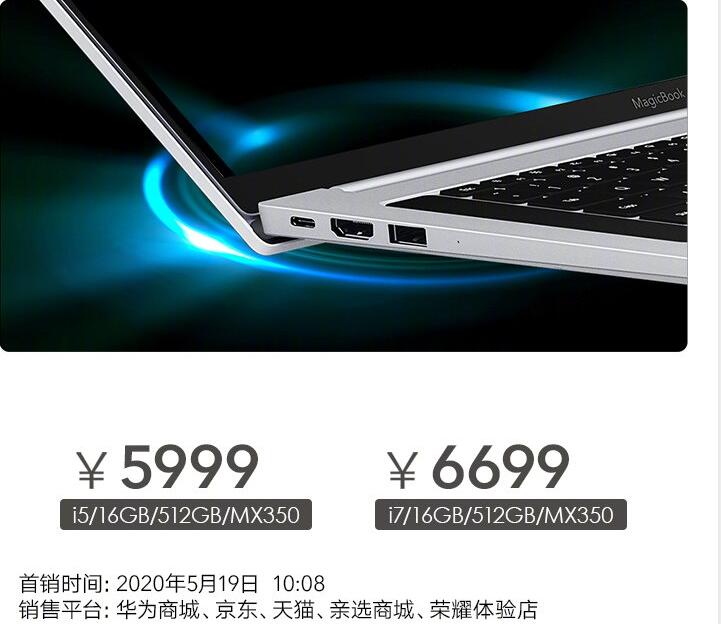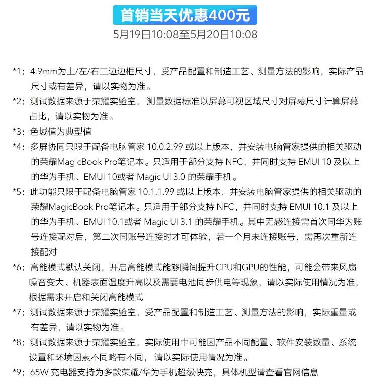 5月19日10:08至5月20日10:08,首銷期間購買榮耀MagicBook Pro 2020款,可享受400元優惠福利。