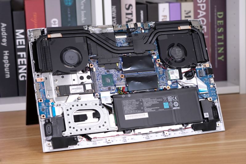 再來看看機械師T90 Plus的內部結構,拆開D面背板能看到的一切螺絲即可快速拆解下來,D面背板的內測還給固態硬盤配備有額定被迫散熱金屬。
