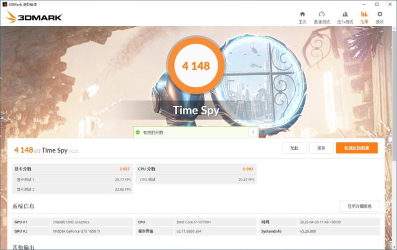 而在顯卡上,機械師T90 Plus選用了GTX 1650Ti,這代顯卡對顯存進行了晉級,晉級為4GB GDDR6顯存,而流處理器小幅減縮,別離測驗了3D Mark的Time Spy,Fire Strike,Fire Strike Extreme,因為機身只要8G內存單通道,在3D Mark的測驗中,吃了內存帶寬的虧,成果遍及偏低,關于游戲玩家來說,自行添加8G內存組成雙通道是必不可少的操作。