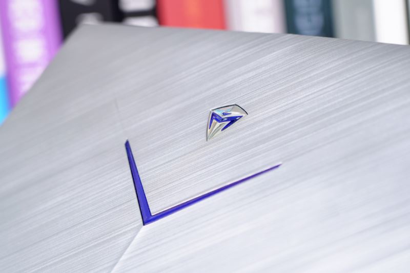 先過下筆記本的外觀,機械師T90 Plus筆記本的A面選用塑料拉絲規劃,中部Logo是立體規劃外表電鍍工藝,而且中心的藍色區域會宣布藍色的燈火。
