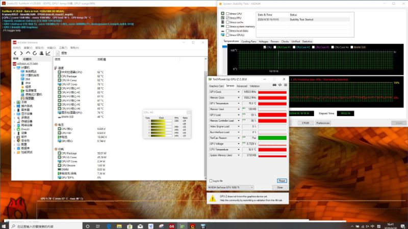 在室溫28度的情況下,電腦敞開狂飆形式進行雙烤測驗,經過20分鐘雙烤,CPU溫度來到92度,功耗堅持在50W,頻率3.4Ghz;而顯卡溫度為76度,功耗也在50W,頻率1470Mhz也就數說這款筆記本模具可以限制50W+50W的功耗。