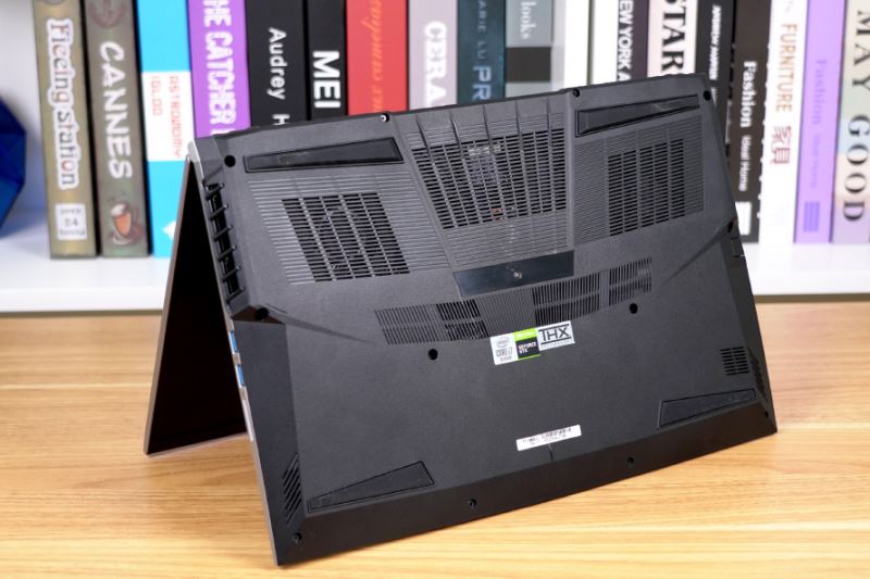 而機身D面便是大面散熱孔空和腳墊,透過散熱孔可以看到內部兩根并聯的超長熱管。