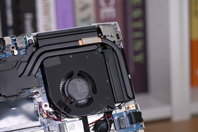 散熱模組上選用雙電扇+2根散熱銅管的串聯規劃,CPU和GPU各分到兩根。預留了一個2280標準的M.2硬盤接口和一個SATA 3 硬盤接口。因為這款筆記本是單條8G裝備,中部也預留有一個內存插槽,用于組成雙通道內存。