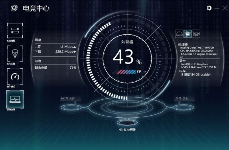 作為輕浮游戲本,機械師T90 Plus相同也預備有GamingCenterU軟件,可對當時電腦的中心溫頓,鍵盤燈效,硬件占用率,顯現形式按進行監控和調整。