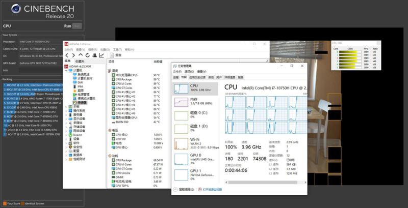 與慣例筆記本比較,一般PL2為瞬時功耗,會比PL1功耗更高,而在機械師T90 Plus上,PL1和PL2功耗堅持一致,這應該是為了盡可能壓榨CPU功能才這樣規劃功耗。而具體這種規劃會帶來怎樣的成果,接下里就進行具體測驗。