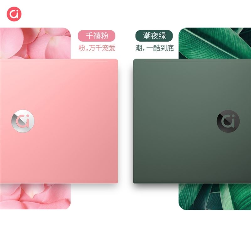 并選取了獨樹一幟的配色,提供千禧粉、潮夜綠兩種選擇,后期會上市的13英寸adolbook13 2020則在潮夜綠之外特別設計了一款迷幻海洋漸變配色,大面積的漸變著色給人以強烈的時尚沖擊力,金屬材質的運用也加深了整體的高光感與吸引力。
