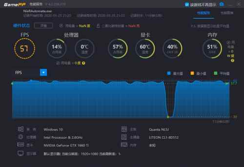 《尼爾:機械紀元》是一款M級第三人稱動作冒險游戲,游戲過程打擊感十足,經過測試,平均幀數為57幀,畫面較為流暢,實際體驗過程中在某些場景會出現輕微卡頓,但不影響體驗。