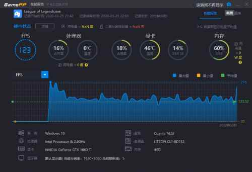 《英雄聯盟》從誕生之日一直火到現在,受眾面廣是拿來測試的主要原因。由于TX公司對游戲的“獨特優化”,導致再強的配置也達不到很高的幀數,最終測試為123幀,游戲過程十分流暢,不存在一絲卡頓。