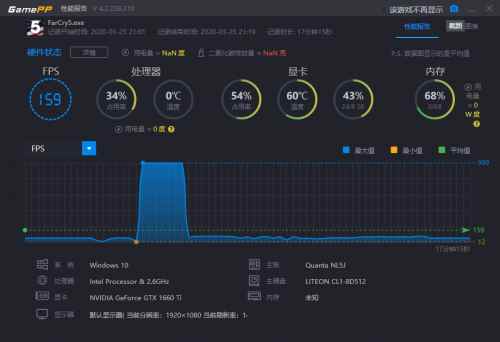 顯卡搭載的是NVIDIA GeForce GTX1660Ti,型號參數為:最新圖靈架構,12nm制造工藝,1536個流處理器,192bit顯存帶寬,配備6GB GDDR6顯存。