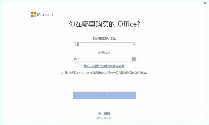 4、根據提示設置地區和語言版本,選擇“中國”和“中文”,點擊“下一個”。