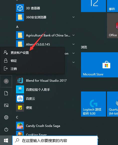 3、點擊后,在彈出的選項界面選擇更改賬戶設置,如下圖所示。