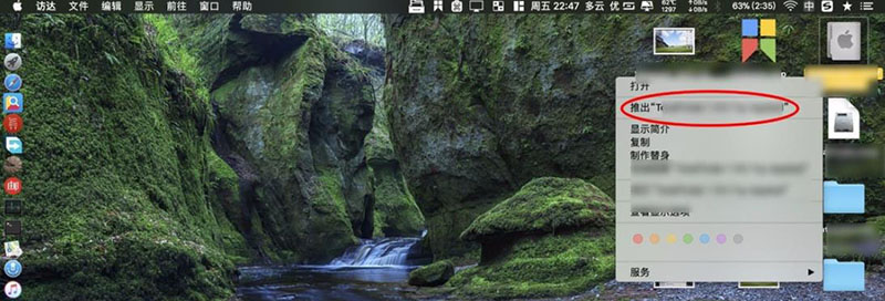 1、一般把U盤插入到mac或者是移動硬盤內存卡則會顯示一個磁盤圖標,在不使用的情況下,可以直接在這個磁盤圖標右鍵選擇推出。如下圖顯示那樣子。