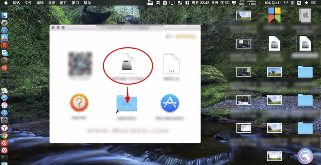 如果下載的應用是dmg格式的話,雙擊后會在桌面出現一個磁盤圖標,如圖一顯示的那樣子。
