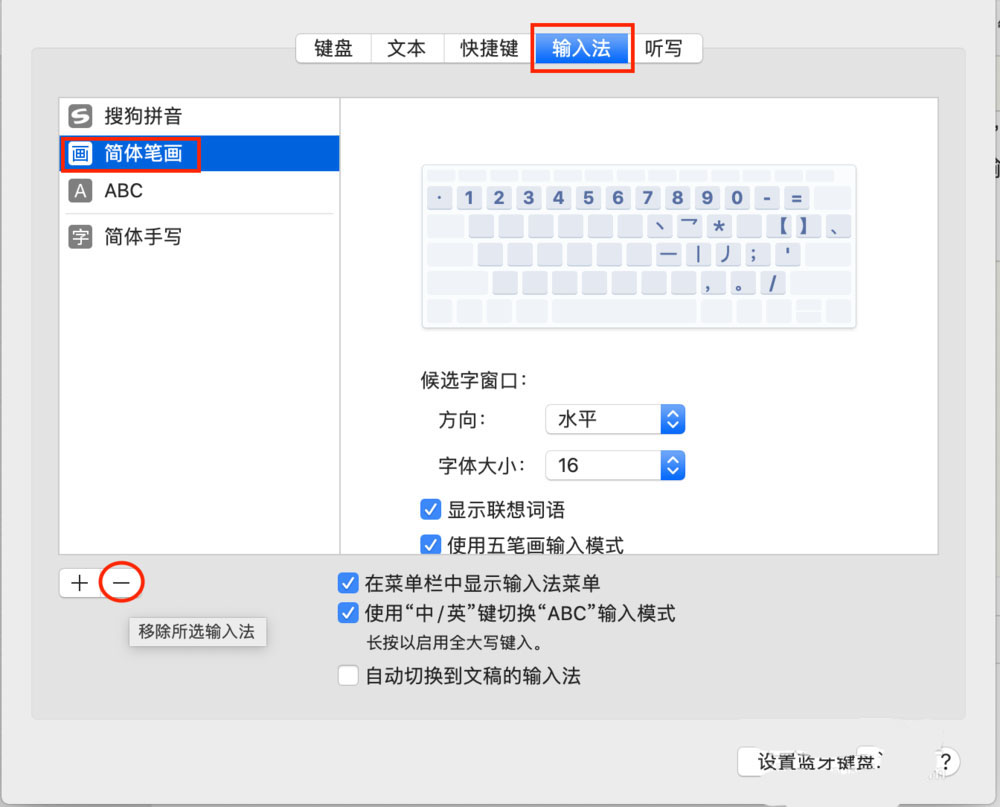 3、點擊 “輸入法”選項,將系統(tǒng)默認(rèn)的輸入法 “簡體拼音”、“簡體手寫”、“簡體筆畫”、“簡體雙拼”都刪除掉即可。(刪除后可能系統(tǒng)沒有輸入法可用,請在刪除前安裝好其它第三方的輸入法,比如搜狗拼音或者五筆)。