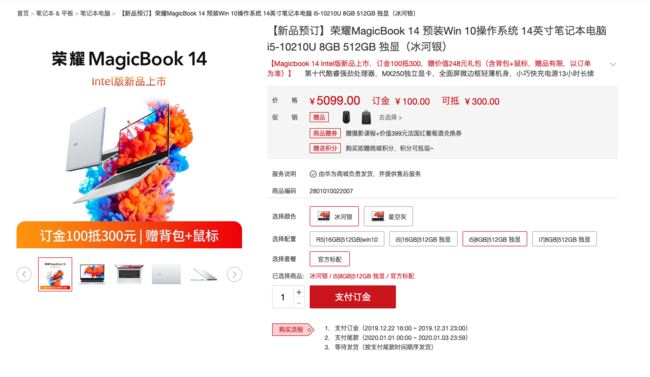 目前榮耀MagicBook 14預(yù)裝win10 Intel版本正在預(yù)售中,訂金100抵300,贈(zèng)價(jià)值248元禮包(含背包+鼠標(biāo)),i7版到手僅需要5599元,而i5版本到手僅需要4899元。