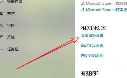 4、然后在右側(cè)的窗口中點擊桌面圖標設置的快捷鏈接。