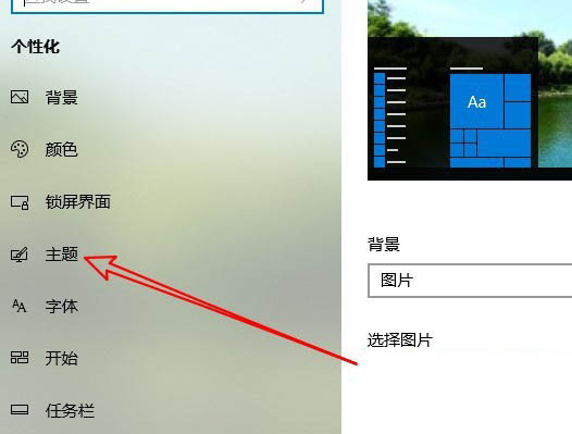 3、接下來在打開的個性化窗口中,點擊左側(cè)邊欄的主題菜單。