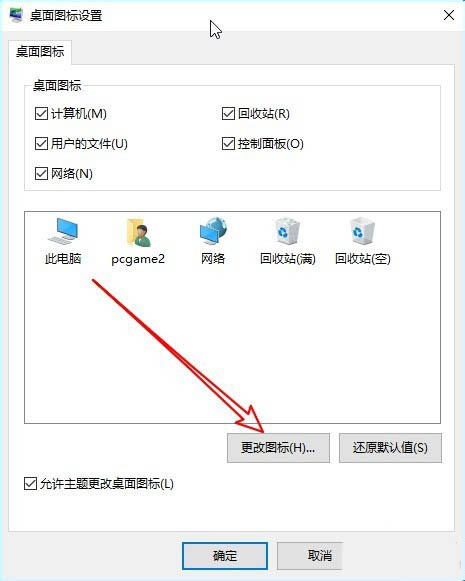 5、在打開的桌面圖標設置窗口中,點擊更改圖標的按鈕。