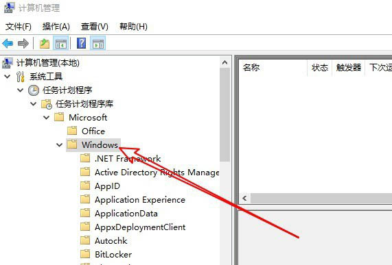 3、依次點(diǎn)擊“任務(wù)計(jì)劃程序庫(kù)/Microsoft/Windows”的菜單。