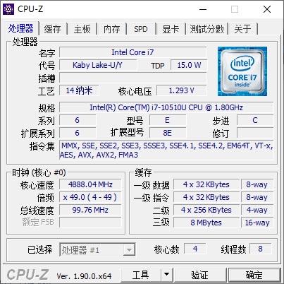 對輕薄本來說,CPU是最重要的,來看一下英特爾酷睿i7-10510U的性能表現。