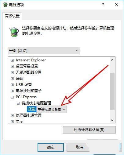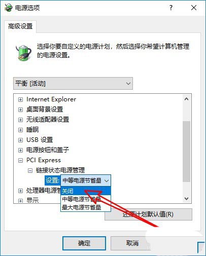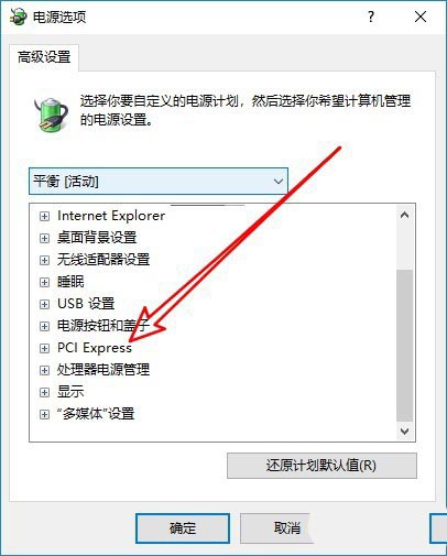 5、然后在打開的電源選項的窗口中找到PCI Express的設置項。
