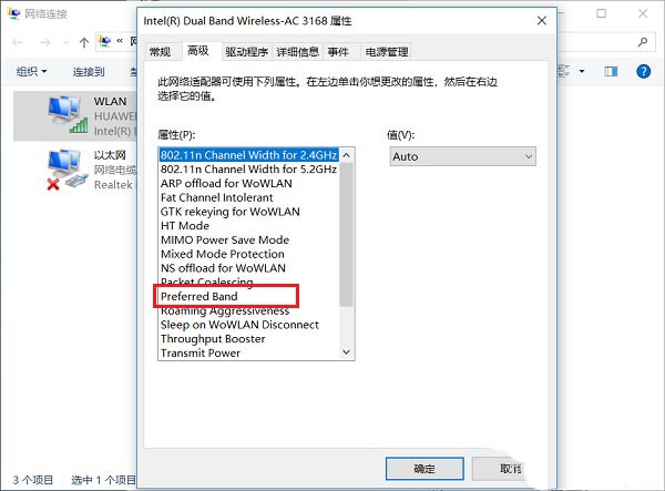 5、選擇首選頻帶之后,我們選擇右側的3首選5G頻帶,這樣筆記本電腦就可以連接5g頻段的wifi了,如下圖所示: