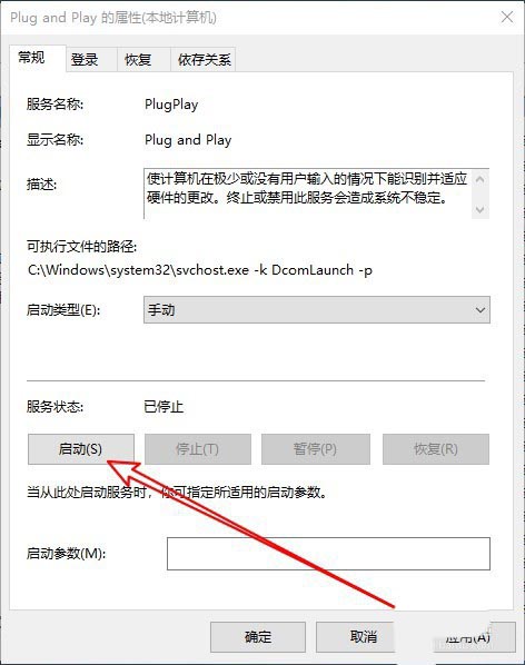 4、這時就會打開屬性窗口,在窗口中找到并點擊“啟動”的按鈕。