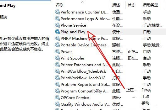 3、接下來在打開的服務(wù)窗口中找到Plug and play的服務(wù)項。