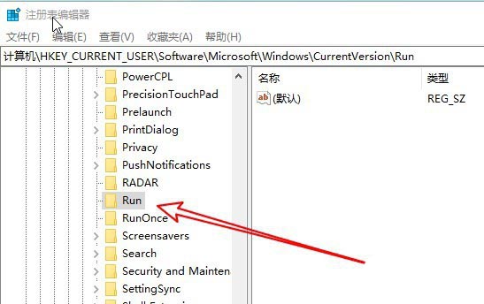 3、然后在打開的注冊表編輯器窗口中定位到Run的注冊表項。