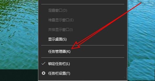 2、在彈出的菜單中選擇“任務(wù)管理器”的菜單項。