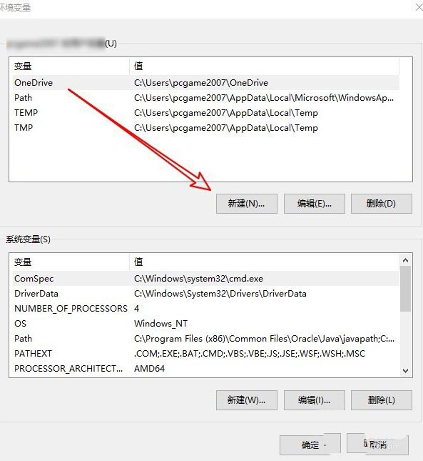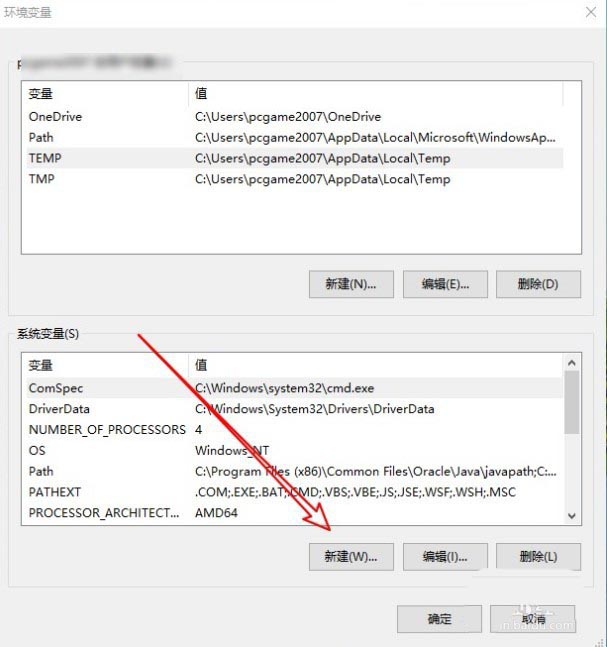 6、另外我們也可以設(shè)置系統(tǒng)變量的窗口,點擊“新建”按鈕。