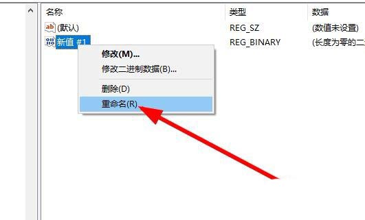 5、右鍵點擊新建注冊表鍵值,在彈出菜單中選擇“重命名”的菜單項。