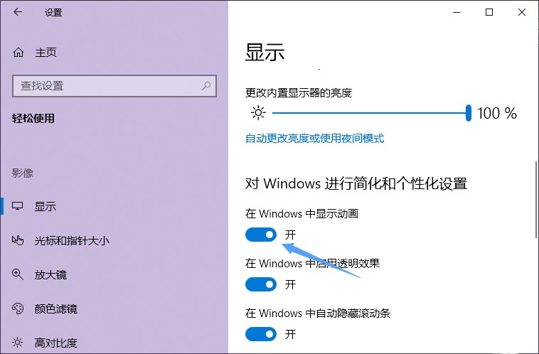4、之后將在windows中顯示動畫的開關向右滑動。