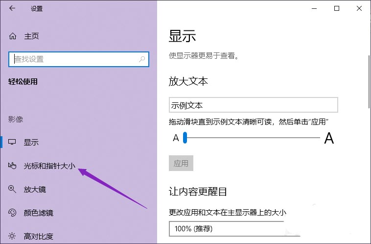 4、點擊光標(biāo)和指針大小。
