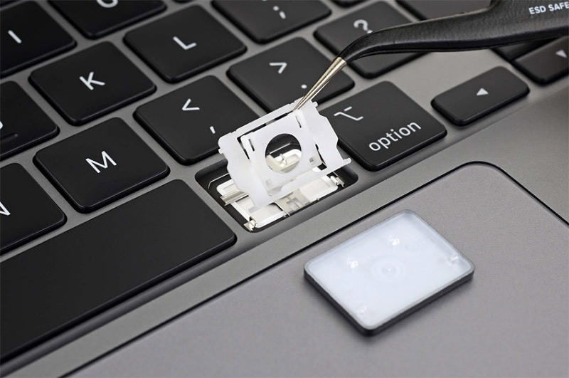 在2015年,蘋果首次于12英寸的Macbook上加入了蝶式鍵盤設計,從12寸超輕薄筆記本電腦產品的定位我們應該很好理解蘋果蝶式鍵盤的設計目標,為了實現更薄的鍵盤體積從而留出更大空間給電腦其它元件。在當初蝶式鍵盤蘋果官方的宣傳文案里,他們突出標明了蝶式鍵盤比傳統剪刀式鍵盤的平衡性和穩定性都大幅加強,但他們卻很少提及更薄的蝶式鍵盤按鍵行程也縮短到了0.7毫米。本來,我們以為這最多只會造成敲擊時手感變差的小問題,多用一段時間就習慣了。可在一年多后,越來越多的用戶開始抱怨蝶式鍵盤出現無法預計的鍵盤連擊或失靈問題。