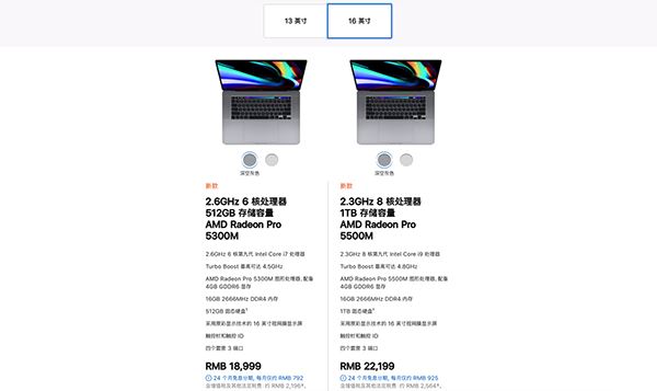 2.6GHz 6 核處理器,512GB 存儲容量,AMD Radeon Pro 5300M(標配):18,999 元
