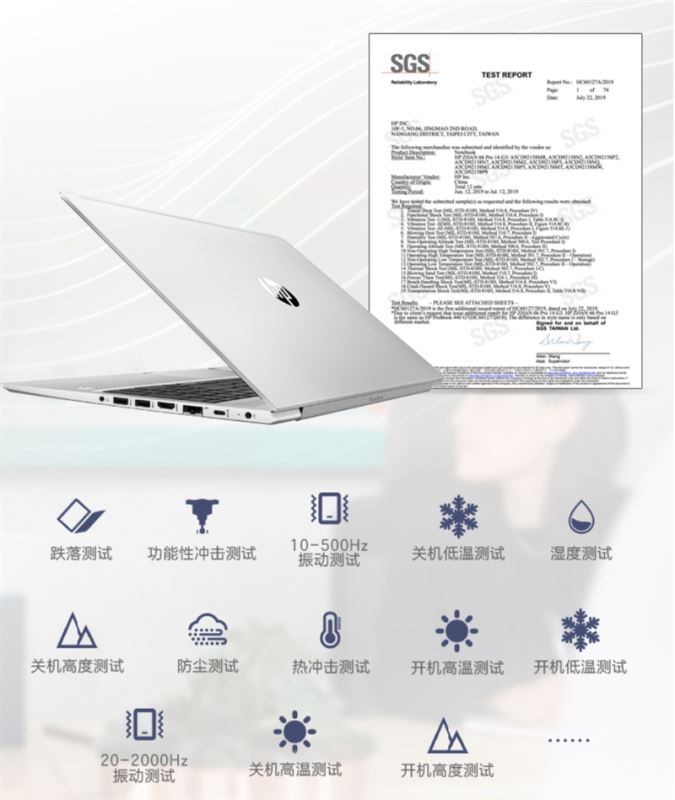 惠普戰66三代通過了包括跌落測試、功能性沖擊測試、10-500Hz震動測試、關機低溫測試、溫度測試、關機高度測試、防塵測試、熱沖擊測試、開機高溫測試、開機低溫測試、20-2000Hz振動測試、關機高溫測試、開機高溫測試等等在內的19項美國MIL-STD-810G軍標測試,確保了在各種嚴酷的環境下也能穩定運行。