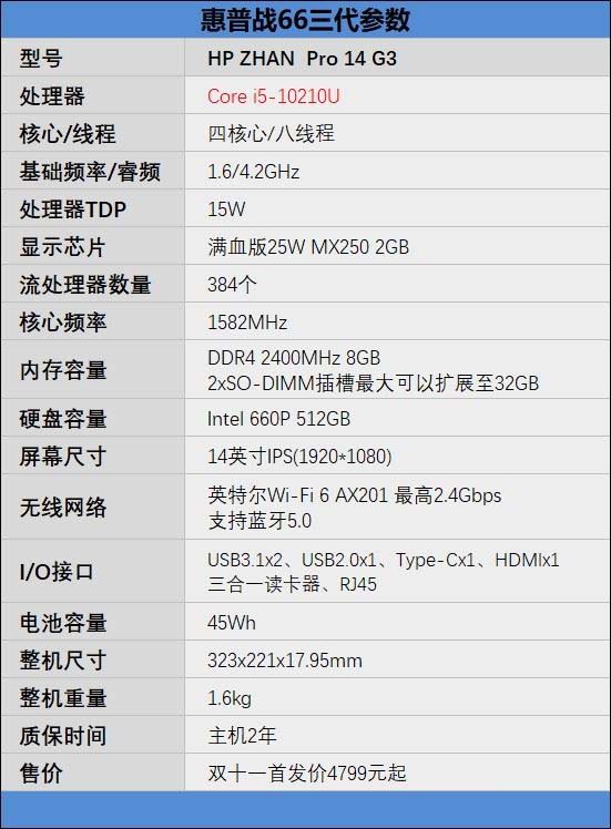 2019年11月1日,第三代戰66筆記本正式發布!新一代的戰66筆記本搭載了Intel第十代Comet Lake酷睿處理器,最多支持6核心12線程,根據intel的官方數據與上一代相比整體性能提升高達16%;顯卡則與二代一樣依然是滿血版的MX250。當然除此之外,第三代戰66筆記本還做了相當多的升級: