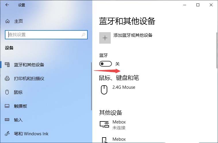 3、將藍牙的開關向右滑動打開即可。