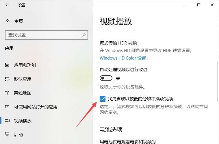 5、點擊勾選上我更喜歡以較低的分辨率播放視頻即可。