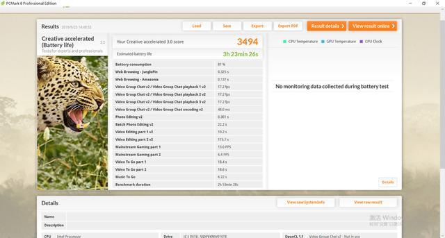 考慮到Machcreator這款設計本也有著輕薄的屬性,筆者用PCMark 8測試了一下不插電下的續航時間,結果為3.23小時,考慮到實際使用時正常情況下不會出現像測試軟件這樣極端的耗電現象,保守估計在完成簡單設計時,Machcreator可以續航4-5小時。