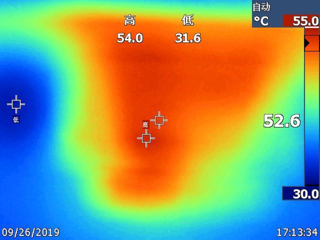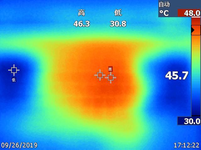 30分鐘后,創物者Machcreator的C面溫度(有鍵盤的一面)最高不過46.3度,D面因為是散熱出口,溫度越高散熱效率也就越好。