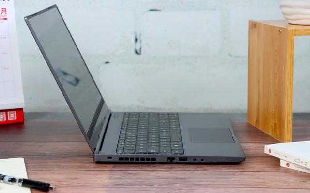 機身左側有一個RJ-45網口、一個USB 2.0 、音頻接口和電腦防盜鎖。從布局來看左側機身大部分融合的都是筆記本誕生初期的接口,可能隨著時代的進步我們覺得有些接口都能被替代,放在筆記本上根本沒必要,但站在設計師的角度上,在提取素材時需要從各種設備上尋找并導出,從這點來看接口的全面就顯得非常重要。