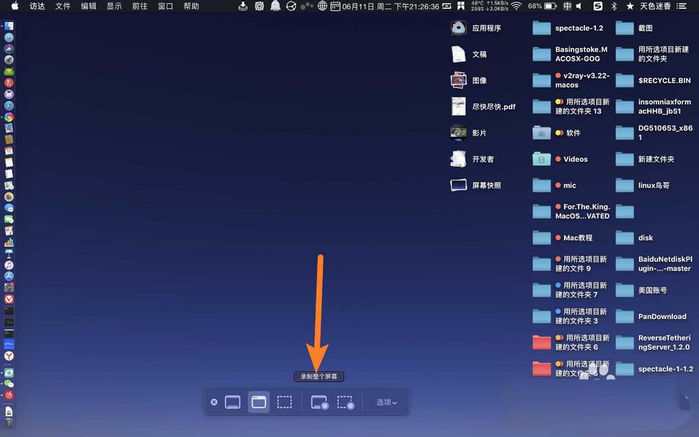 2、點擊屏幕快照,錄制全屏點擊箭頭這。