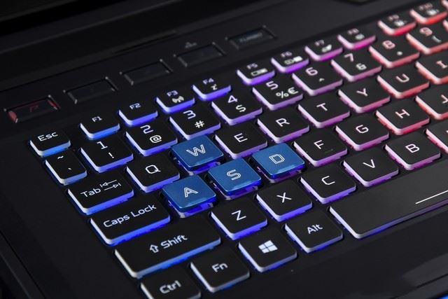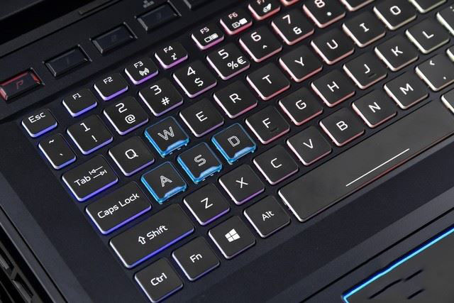 在戰(zhàn)斧700的鍵盤區(qū)我們看到了與眾不同的WASD按鍵,這在許多游戲本中都可以看到類似設(shè)計(jì),但戰(zhàn)斧700可不光是做個(gè)樣子,它的WASD鍵是有真材實(shí)料的。
